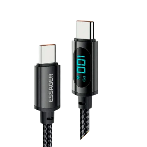 Особливості кабелю Essager Led Digital Display Type-C to Type-C (100W, 5A):